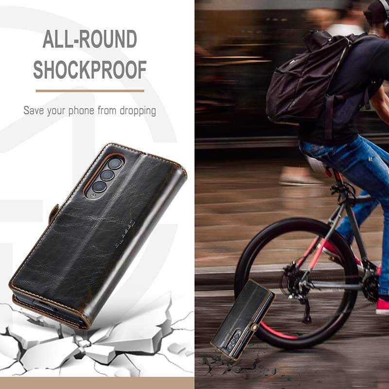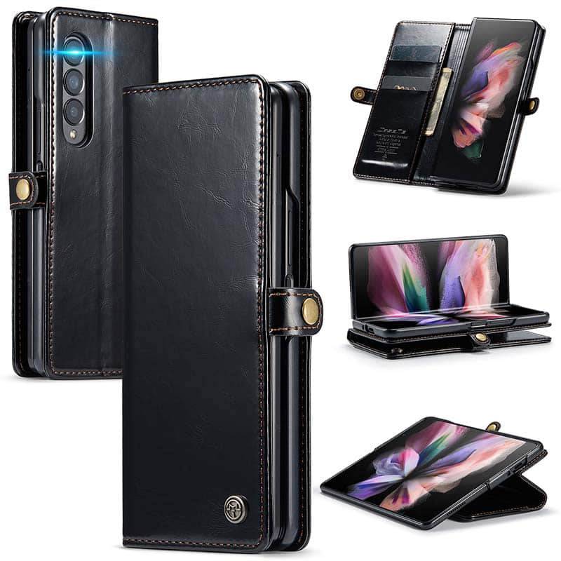 - Full Protection: Galaxy Z Fold 3 leather cases are precision made of top leather. They are durable and feel natural and soft. The interior TPU Shell ensures the phone is against drops and bumps. The raised edge around the camera help protect the glass from scratching and dirt. Each card slot is designed with RFID shielding technology that can block RFID signals and protect personal information from unauthorized scanners.