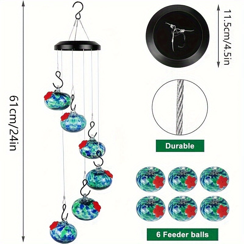 - 【Innovative Wind Chimes Feeder】 A creative blend of windchimes and humming birds feeders for outside, providing multiple feeding spots. A versatile addition to any indoor or outdoor space.