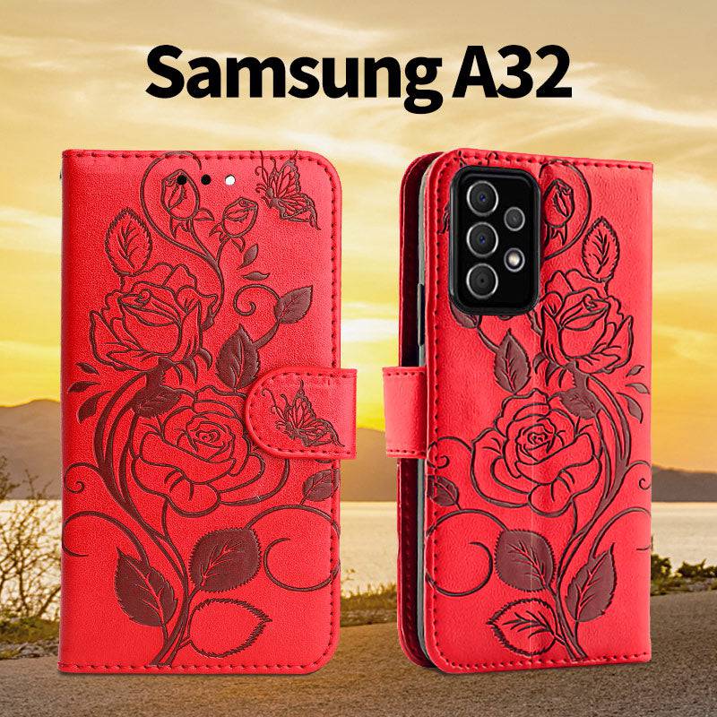 3D Embossed Rose Wallet Case For Samsung A32(5G)