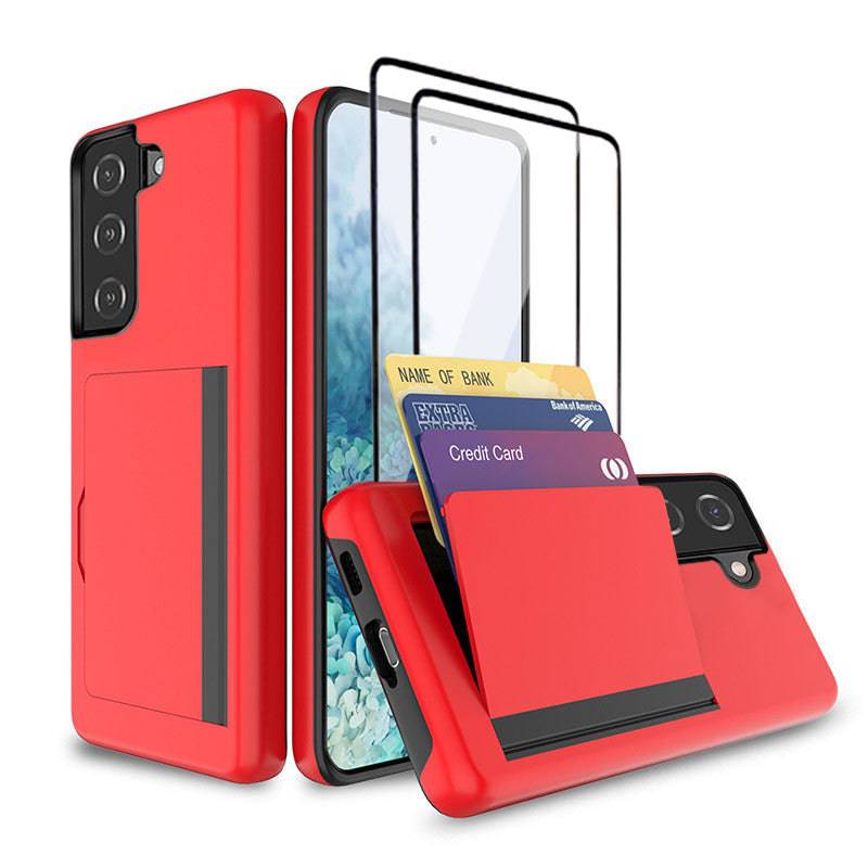 Armor Protective Card Holder Case for Samsung S21 FE(5G) With 2-Pack Screen Protectors