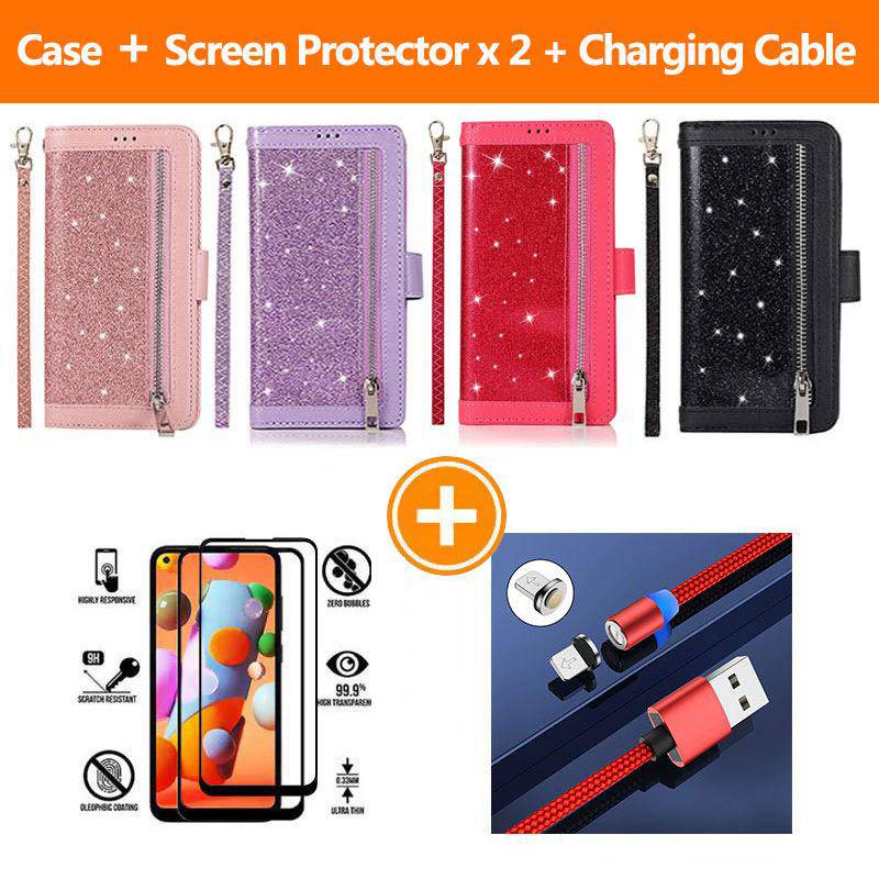 Bling Wallet Case with Wrist Strap for Samsung A52(4G/5G)