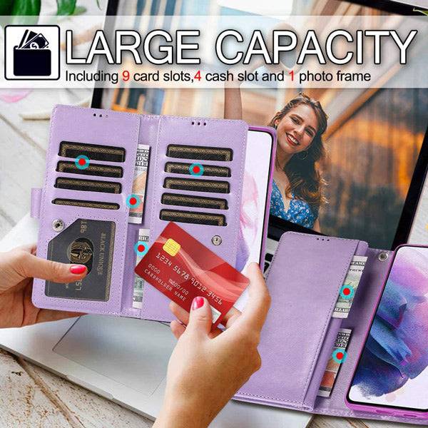 FEATURES: ▶[COMPATIBLE WITH]: Specially designed for [Samsung Galaxy S21 5G 6.2Inch].▶[LARGE CAPABILITY+WRIST STRIP]:Inside features 9 card slots,1 zipper coin pocket,... Read more Read more