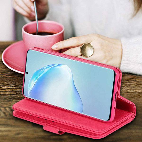 ▶[MAGNETIC CLOSURE+STAND FEATURE]:The magnetic clasp snaps firmly closed to keep cards and cash inside, safely and kickstand feature for a hands-free viewing experience.