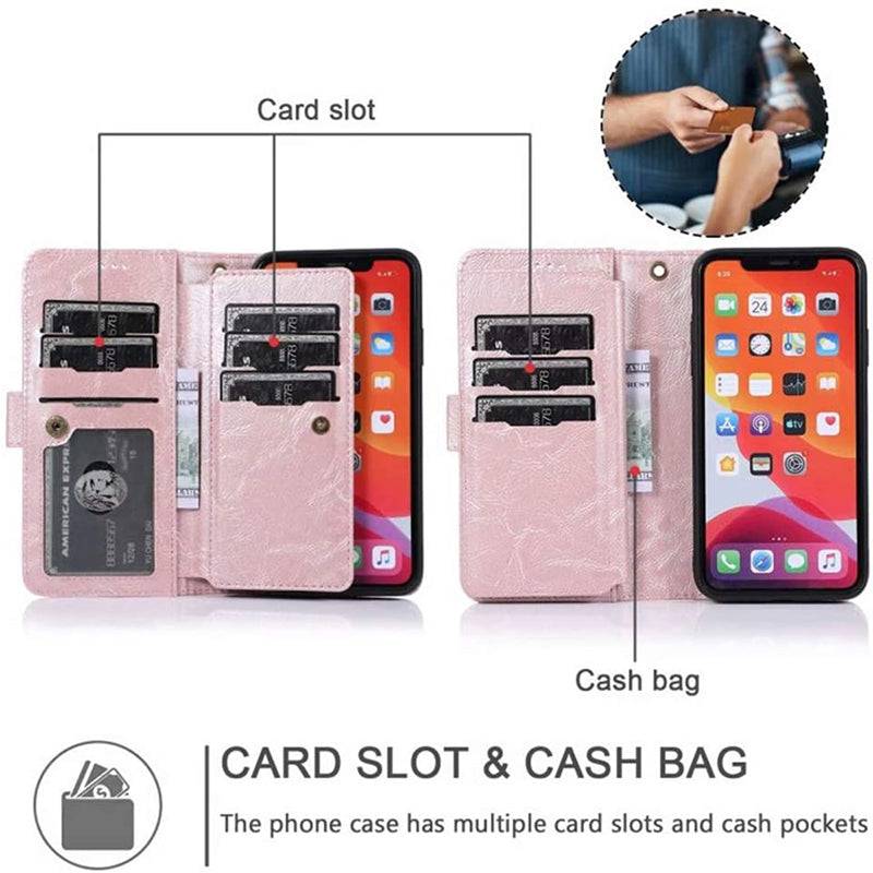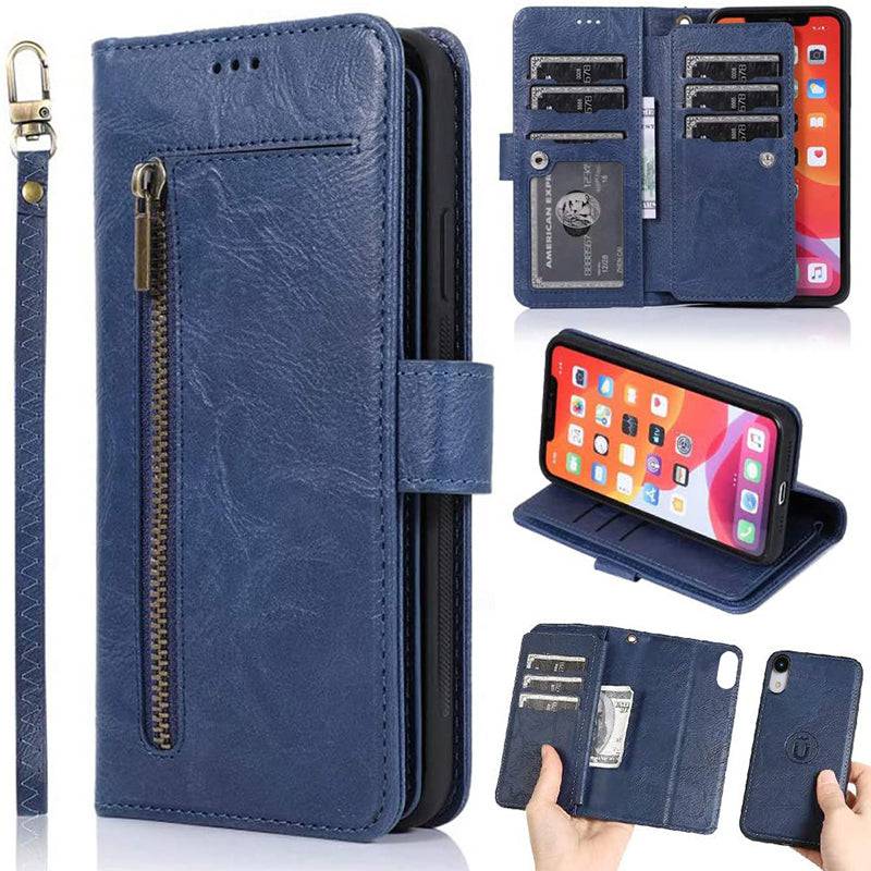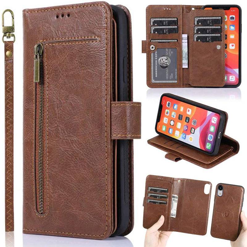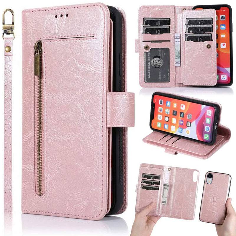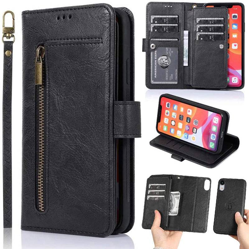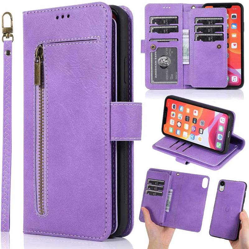 Detachable Flip Folio Zipper Purse Phone Case for iPhone XR