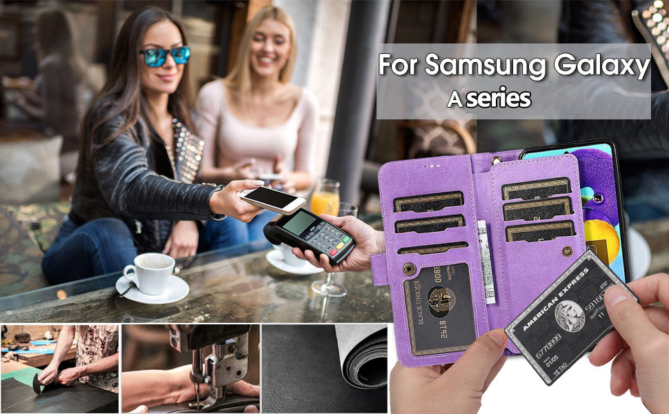 Detachable Flip Folio Zipper Purse Phone Case For Samsung A Series