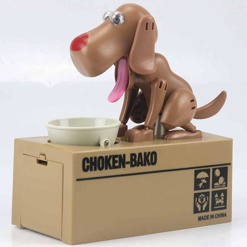 Drop some coins into his dish and he immediately goes for it, with a dog-like enthusiasm that you'll love! The coins are stored inside the box after they "eats" them up, making it a great way to promote savings for all ages!
