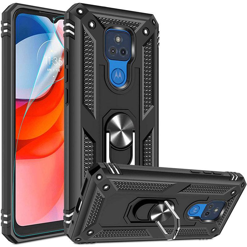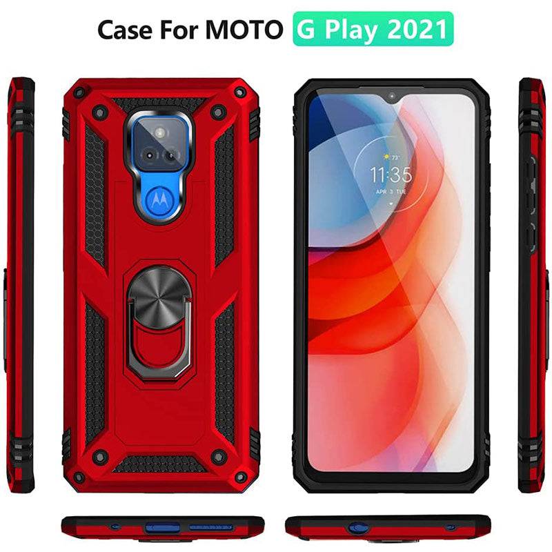 Luxury Armor Ring Bracket Phone case For Moto G Play 2021 With Screen Protector