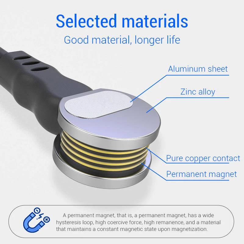 - Material: TPE jacket, Zinc Alloy, Aluminium Foil, Tinned Copper Core, Permanent magnet