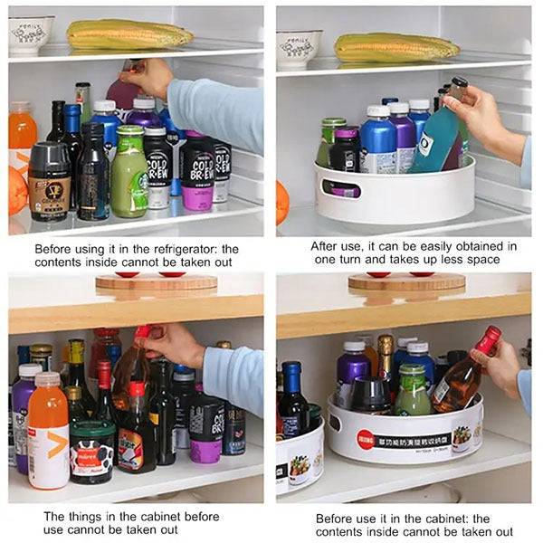 - ✅【360° Rotating Design】: This rotating lazy susan storage organizer operates on smooth-gliding, stainless steel ball bearings for an easy spin every time. It makes every items easy to be reached, even when it stored on upper shelves