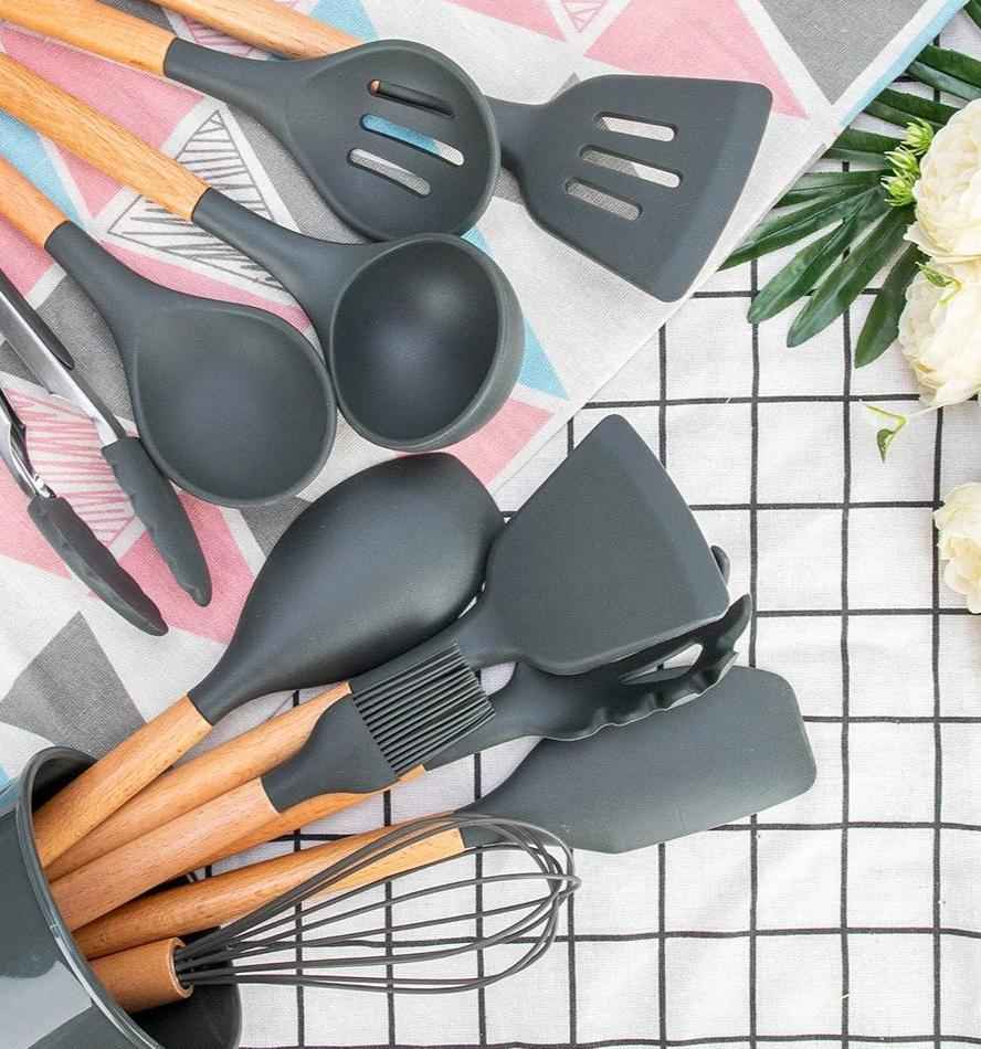 Add a splash of color and sophistication to your kitchen with our Premium utensil set. Utensil handles are made of the highest quality acacia wood; they are easy to grip and comfortable to hold.