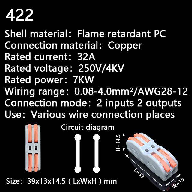 WIRE GAUGE SUITABILITY - Connects different types & sizes of wiring. Suitable for solid and stranded wires connections, voltage range of the connector is from solid/stranded size of 0.08-2.5mm2 / 28-14AWG.