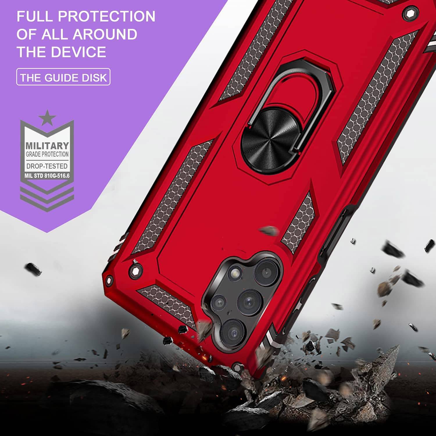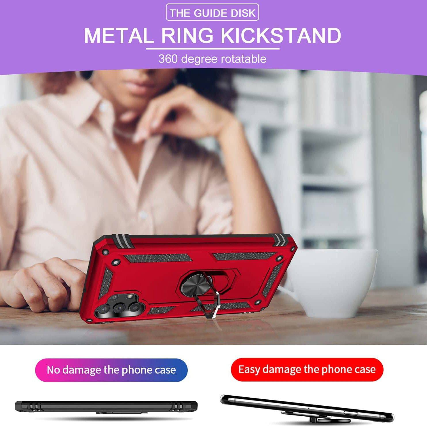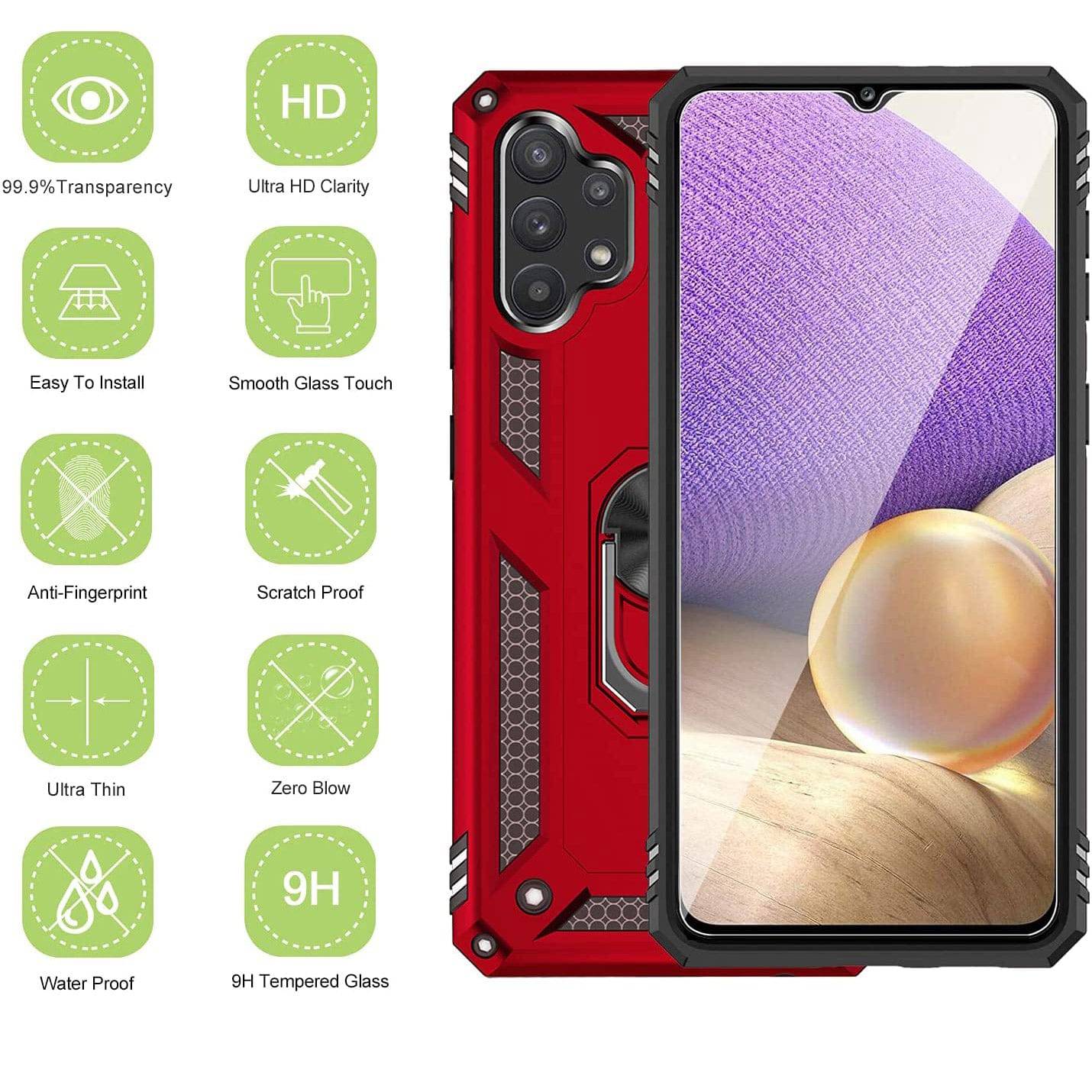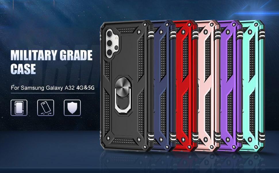 Our Armor Ring Bracket Series Samsung A32(5G) Cases are completely unmatched in creativity and uniqueness. Also comes with 2 pcs tempered glass screen protectors.