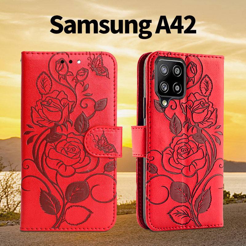 3D Embossed Rose Wallet Case For Samsung A42(5G)